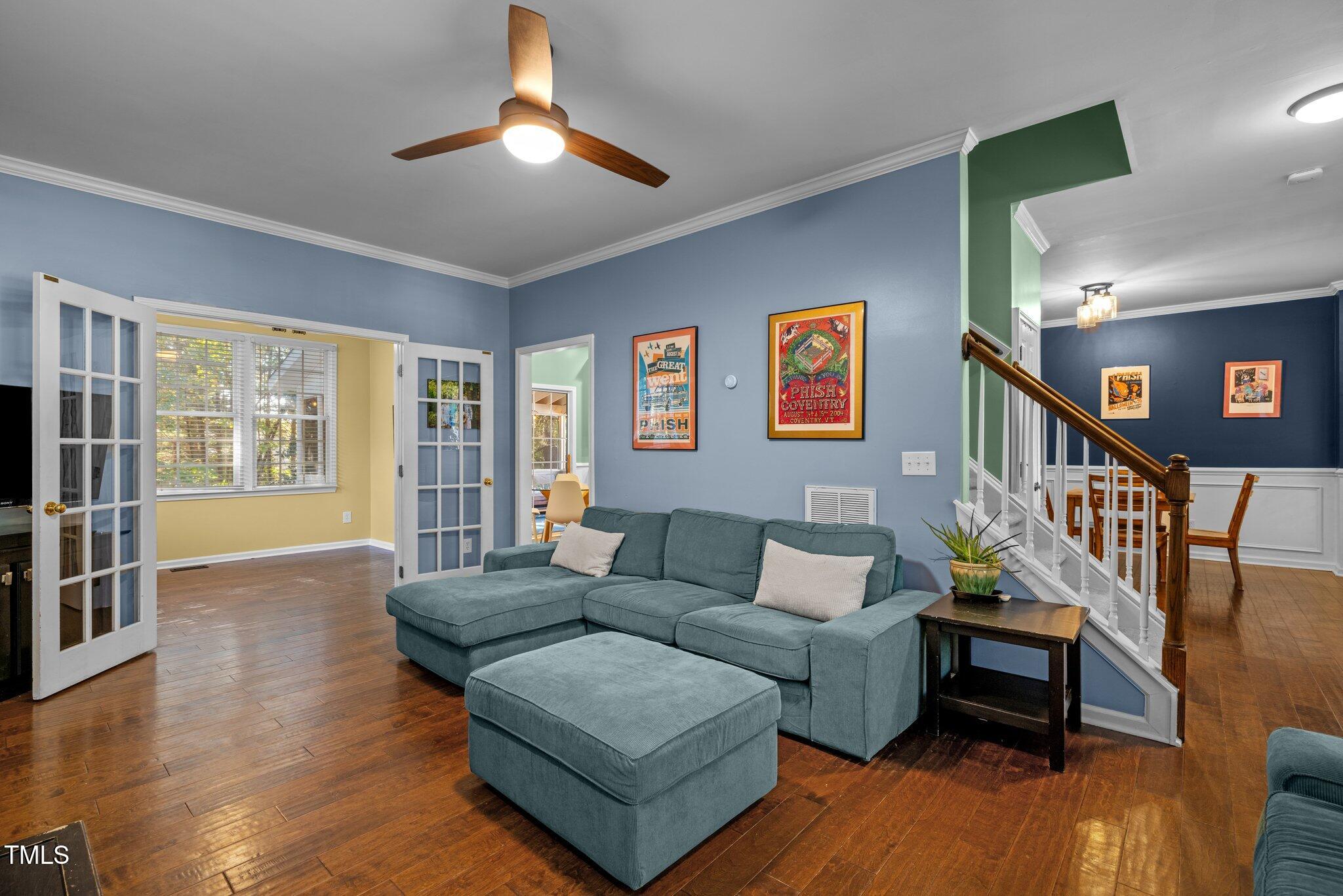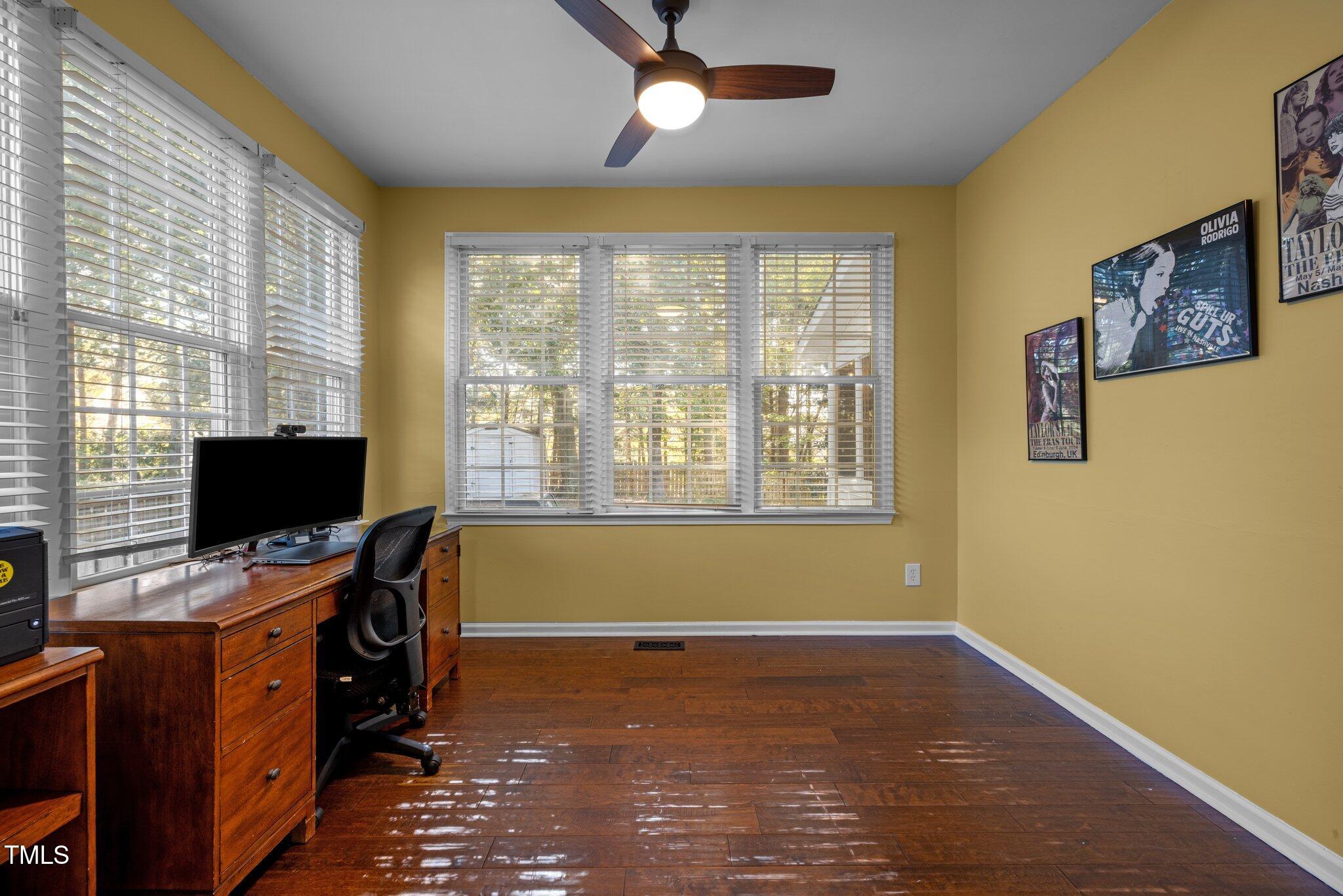 Welcome to 1208 Pearson Farms Rd, a beautifully updated residence nestled in the desirable Pearson Farms community. Sellers will consider a paint concession! This home features stunning new hand-scraped wide plank hardwood floors that flow seamlessly throughout the main living areas. The kitchen is a chef's dream, showcasing 42'' full overlay maple cabinets, elegant granite countertops, and stainless steel appliances. The sun-drenched first-floor office, with ample natural light, can serve as a serene study, playroom, or home gym. Retreat to the expansive master suite, complete with dual closets for optimal organization. The large third-floor bonus space offers versatile options as a fourth bedroom or additional office. Step outside to enjoy the gigantic screened-in porch, perfect for entertaining or unwinding in the shade of mature trees. The private, heavily landscaped yard features a blooming magnolia, a peach tree, an apple tree, and several berry bushes, creating a picturesque outdoor oasis. This home is ideally located with convenient access to the Beaver Creek Greenway, connecting you to Kelly Road Park and soon-to-be Nature Park in Apex. The neighborhood is designed with walkable sidewalks and offers amenities like a well-established swim team and nearby pickleball courts. Experience the perfect blend of comfort and convenience in this exceptional home--schedule your tour today!