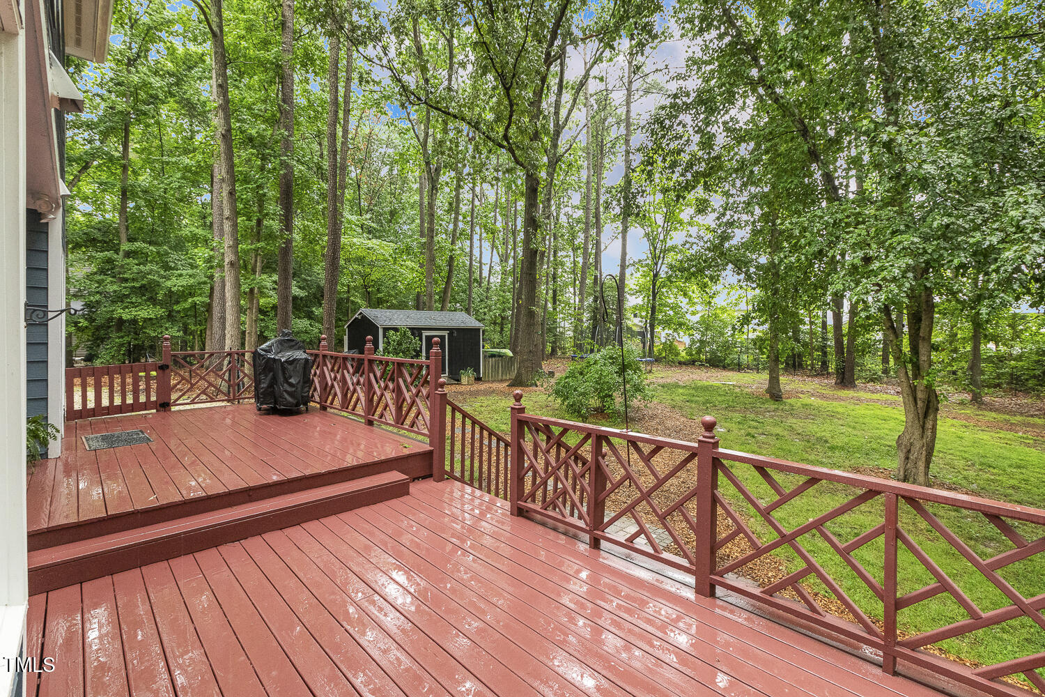 Beautifully maintained home on a large, private fenced lot closed to all Wake Forest and Raleigh have to offer! Updated kitchen features granite countertops, stainless steel appliances, and white cabinetry. LVP throughout first floor.New roof and gutterguards-2024. New HVAC-2023.Spacious owner's suite with dual vanities and his-and-hers closets. Bonus room offers a 4th bedroom option or a game room. Enjoy the peaceful, wooded backyard from the oversized deck. Tons of storage with a large walk-up attic and separate storage area. Generous parking space for oversized vehicles, boats, or trailers.