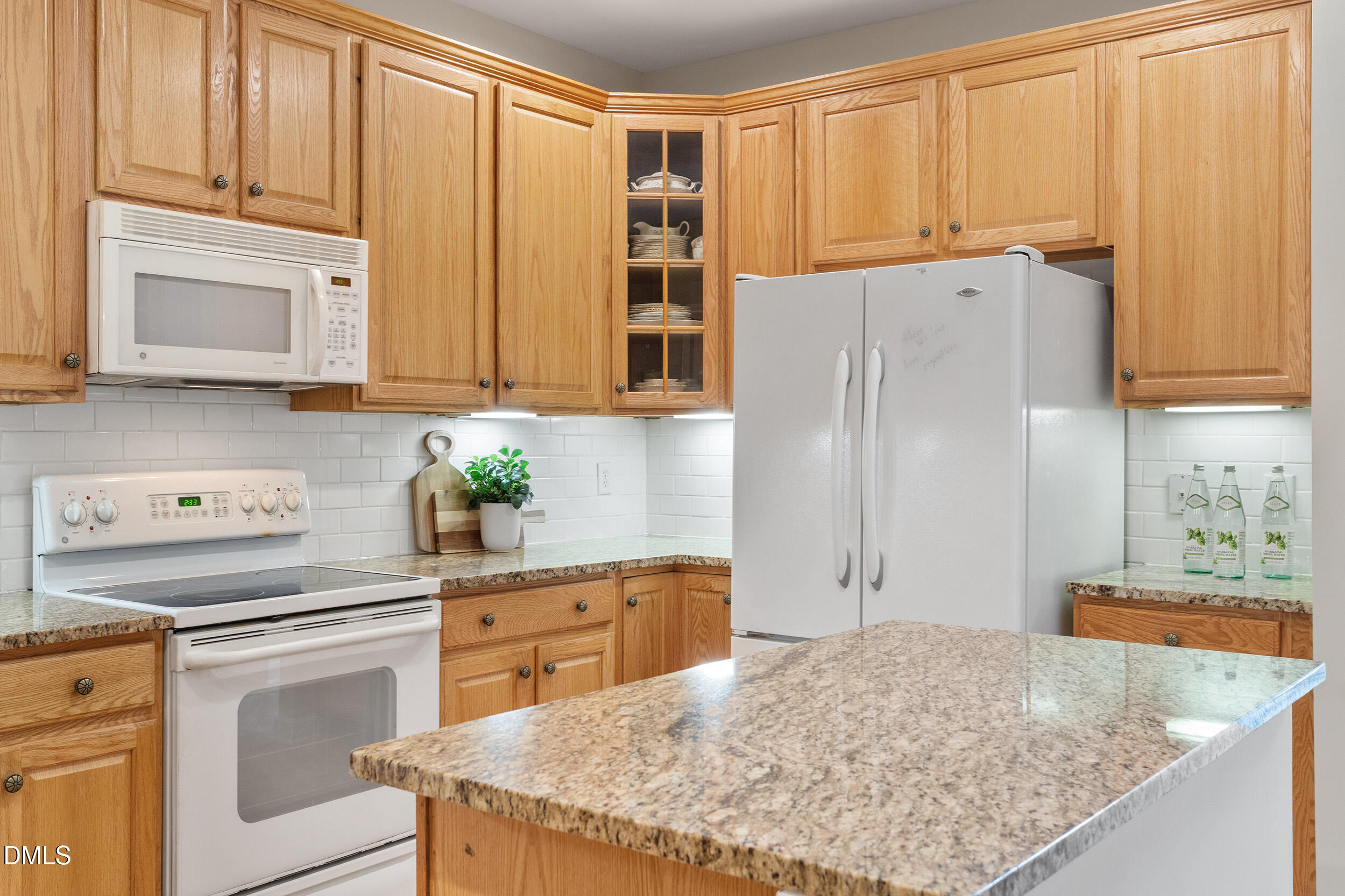 Upon entry, you're greeted by exquisite architectural details and newly refinished white oak hardwood floors. The chef's kitchen stands as a masterpiece with rich raised-panel oak cabinetry, elegant glass display fronts, gleaming granite countertops, and a stylish subway tile backsplash. A center island and breakfast bar peninsula, generous pantry, rollout drawers, under-cabinet lighting, and a butler's pantry with display cabinetry set the stage for culinary excellence and effortless entertaining.
