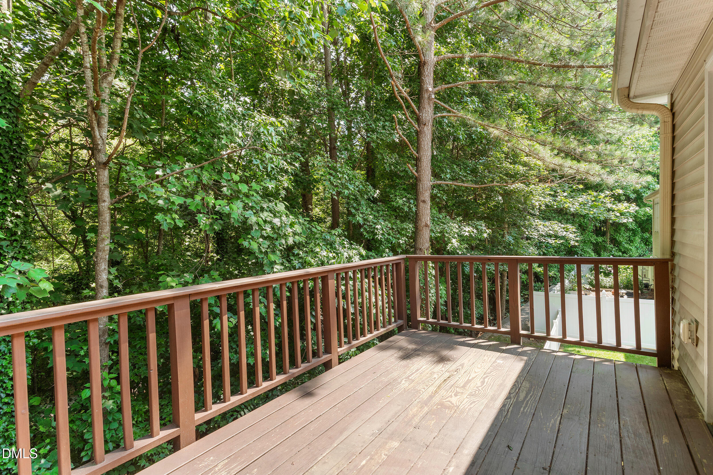 Noteworthy features include a two-car garage with an epoxied floor, custom workbench, and built-ins. Outdoor living is enhanced by a covered patio with a ceiling fan and a deck overlooking a lush, tree-lined greenway, perfect for al fresco dining or tranquil evenings.