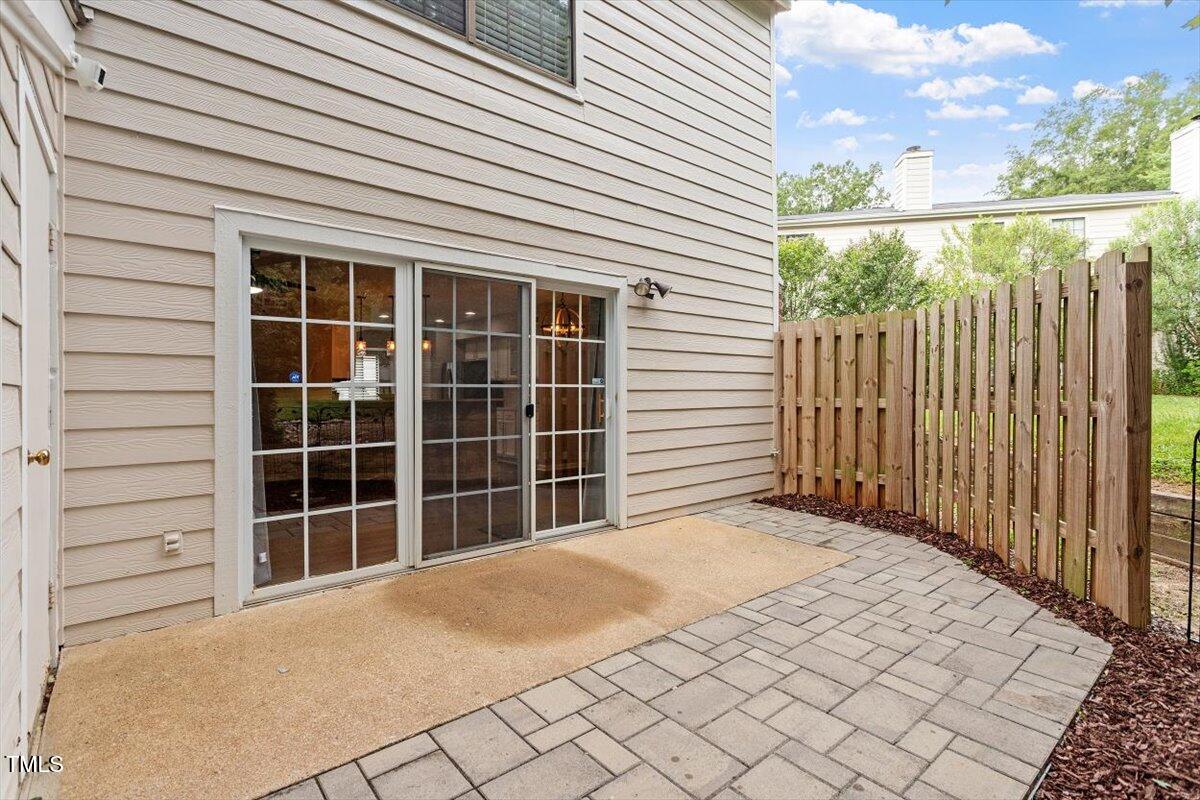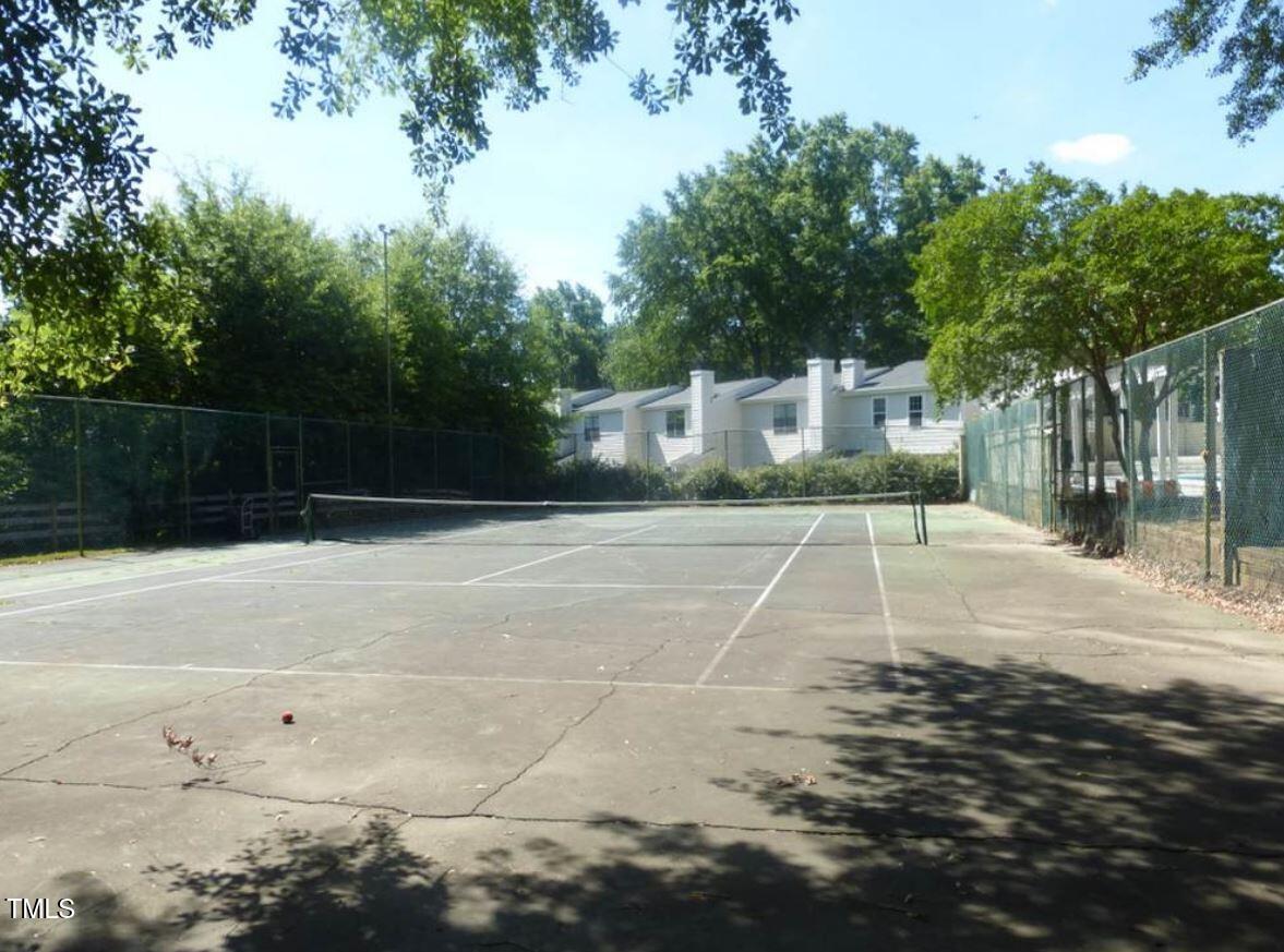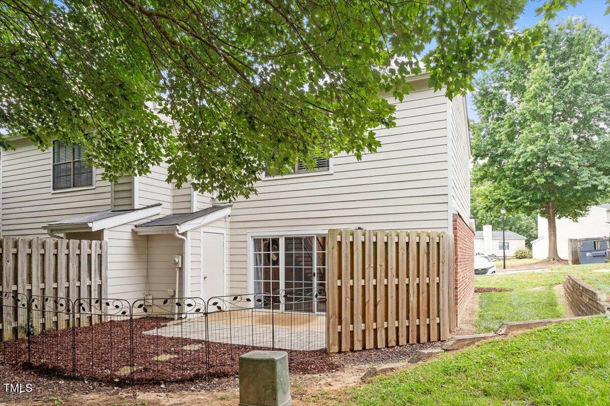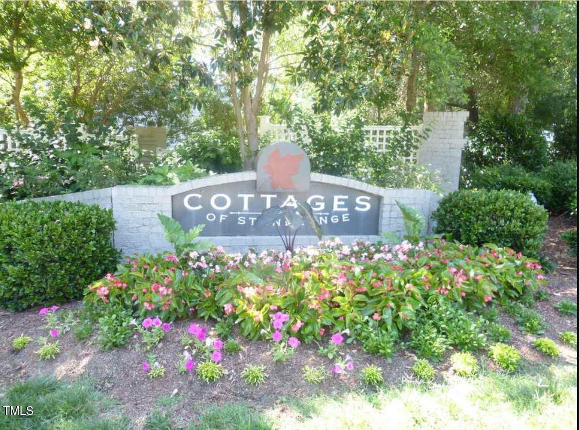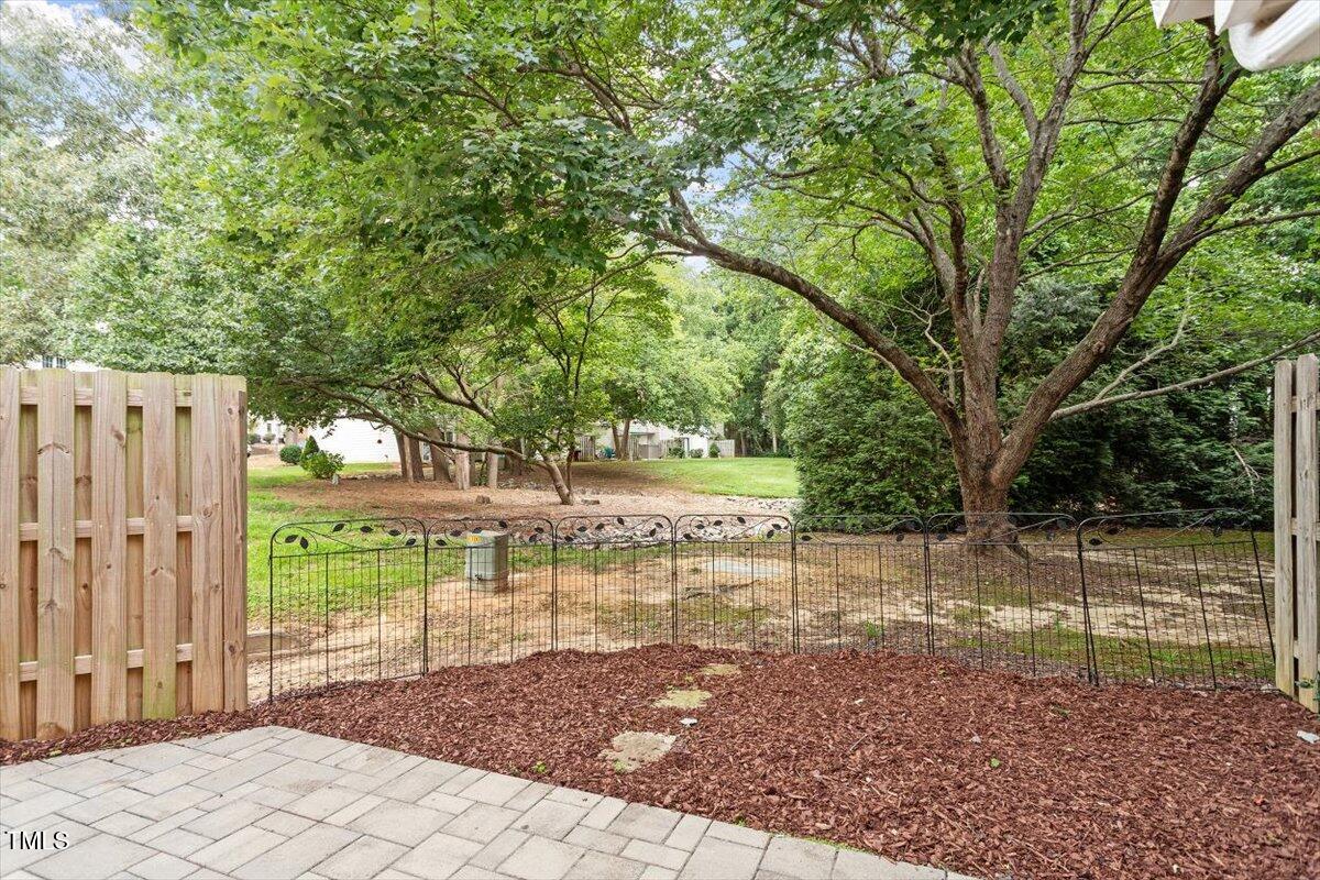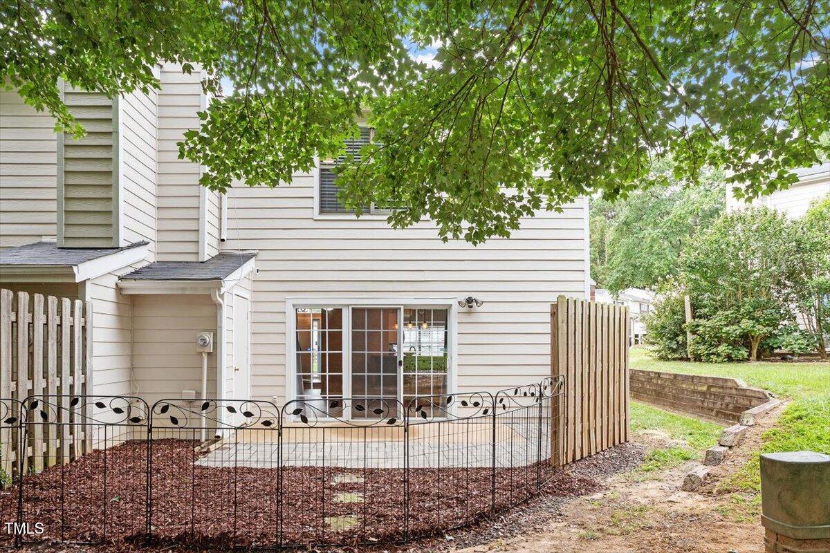 Beautiful End-Unit Condo in Prime North Raleigh Location! Live the maintenance free life-style in the desirable Cottages of Stonehenge. Features 2 spacious bedrooms, each with its own updated ensuite bath, plus a renovated powder room. LVP flooring throughout (NO carpet!). The kitchen features quartz countertops, glass tile backsplash, stainless steel appliances and tons of cabinet space. The over-sized sliding glass door brings in plenty of natural light. The owner's bathroom has a large walk-in shower and dual sinks. Enjoy one of the largest backyard spaces in the neighborhood that backs up to wooded area and has extra patio space plus functional fencing. Water heater (2020) and new AC (2025)! The Storage room is in the back of the condo. Community amenities include pool, tennis courts, clubhouse, and playground perfect for Summer activities. Top-rated schools and unbeatable location close to shopping, dining, and major roads. Great for investors who are looking for Raleigh rentals. Assigned parking in front plus visitor spaces. A must-see!