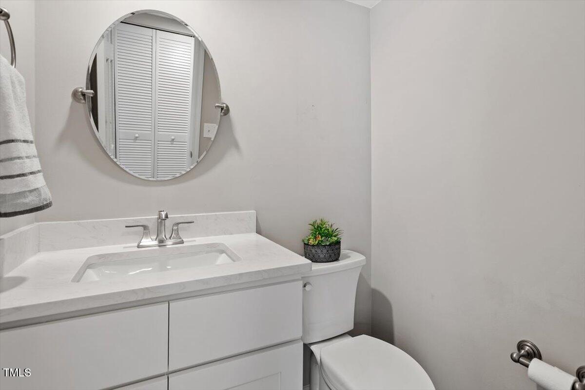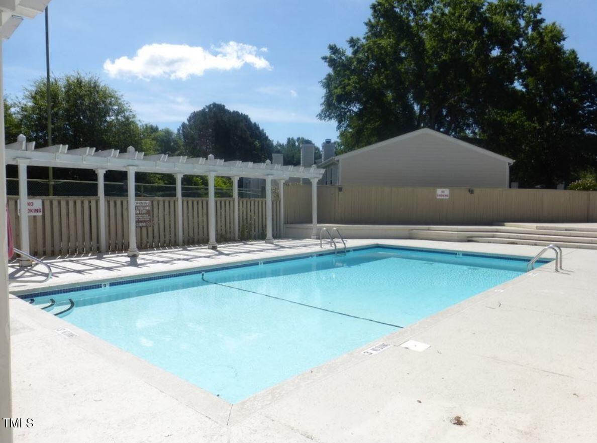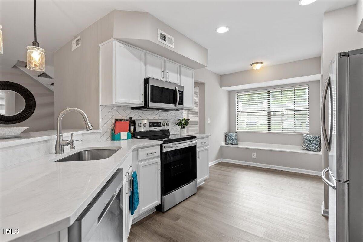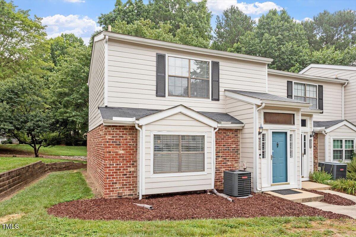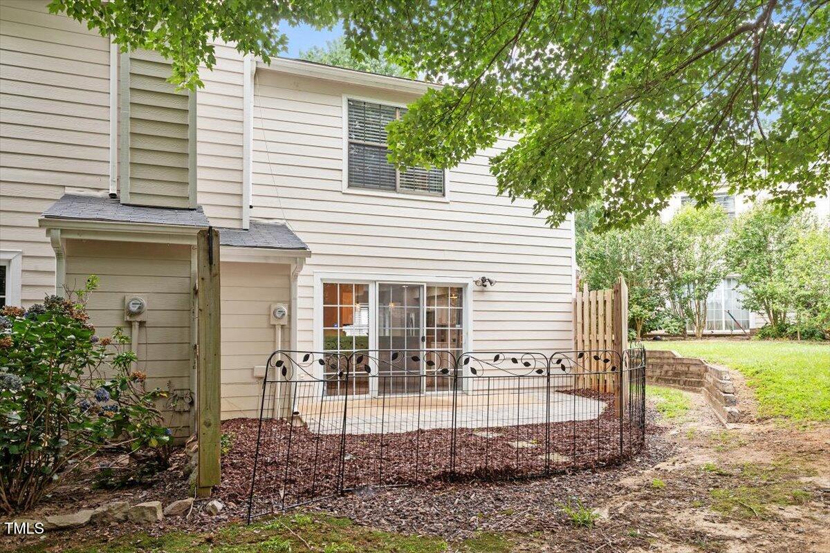 Beautiful End-Unit Condo in Prime North Raleigh Location! Live the maintenance free life-style in the desirable Cottages of Stonehenge. Features 2 spacious bedrooms, each with its own updated ensuite bath, plus a renovated powder room. LVP flooring throughout (NO carpet!). The kitchen features quartz countertops, glass tile backsplash, stainless steel appliances and tons of cabinet space. The over-sized sliding glass door brings in plenty of natural light. The owner's bathroom has a large walk-in shower and dual sinks. Enjoy one of the largest backyard spaces in the neighborhood that backs up to wooded area and has extra patio space plus functional fencing. Water heater (2020) and new AC (2025)! The Storage room is in the back of the condo. Community amenities include pool, tennis courts, clubhouse, and playground perfect for Summer activities. Top-rated schools and unbeatable location close to shopping, dining, and major roads. Great for investors who are looking for Raleigh rentals. Assigned parking in front plus visitor spaces. A must-see!