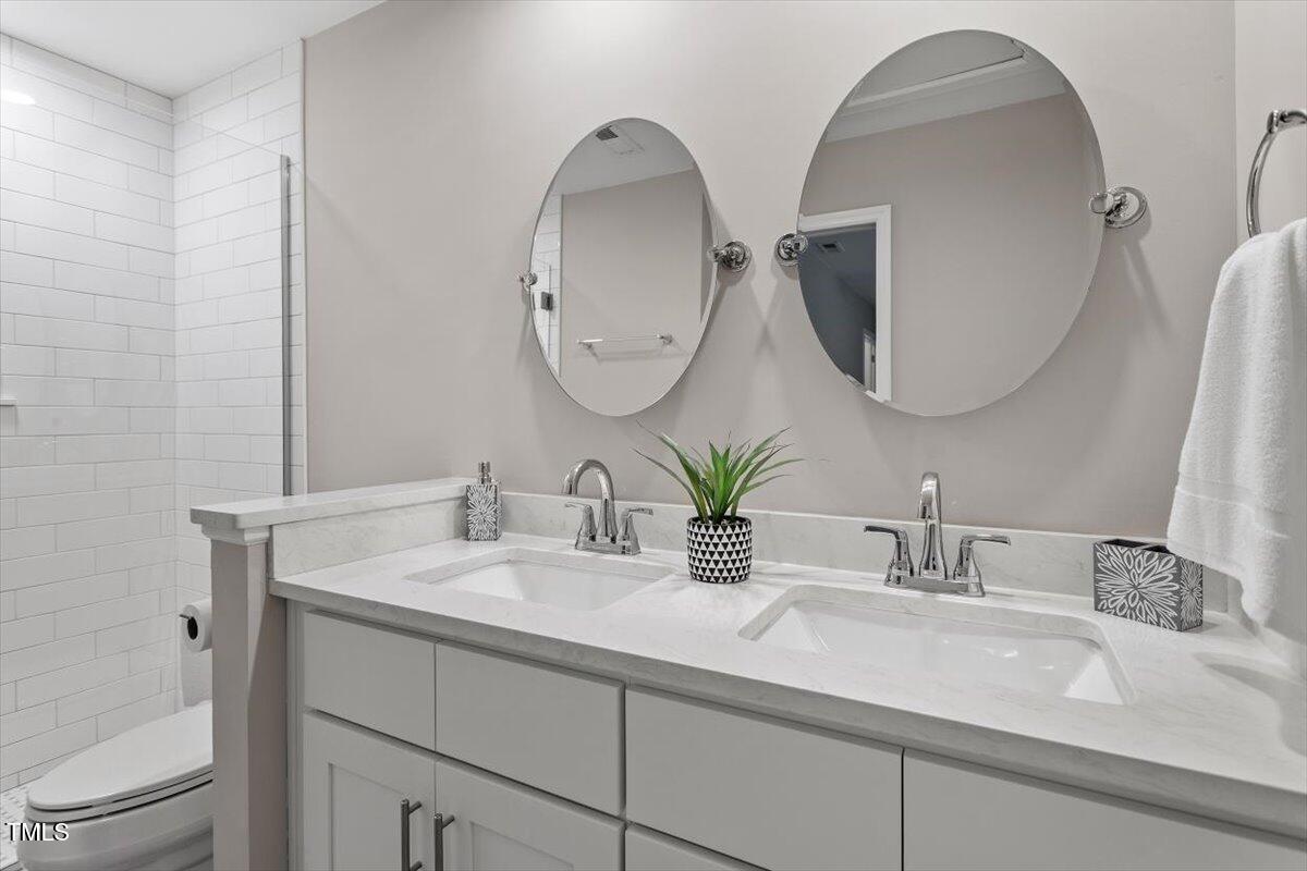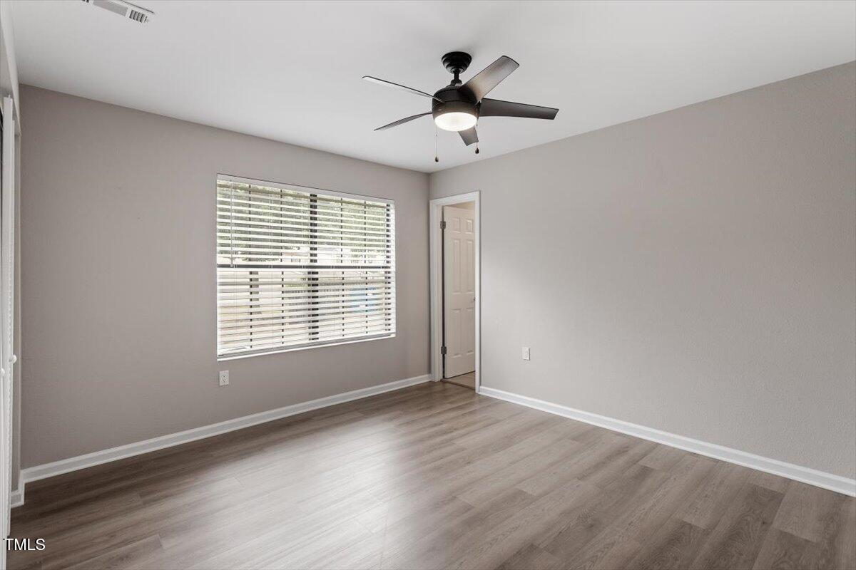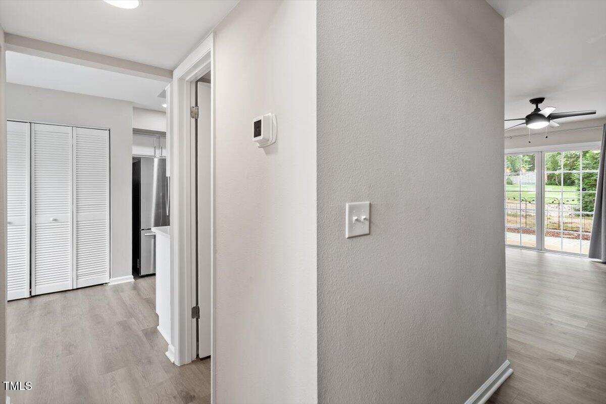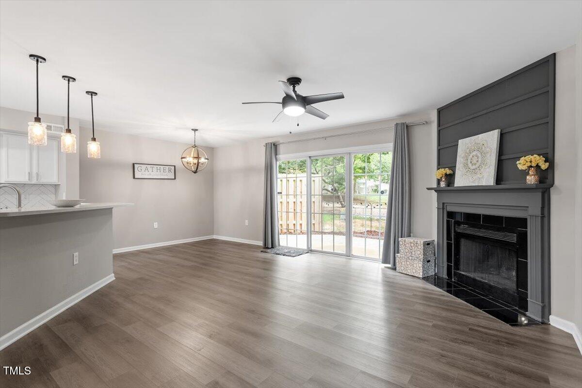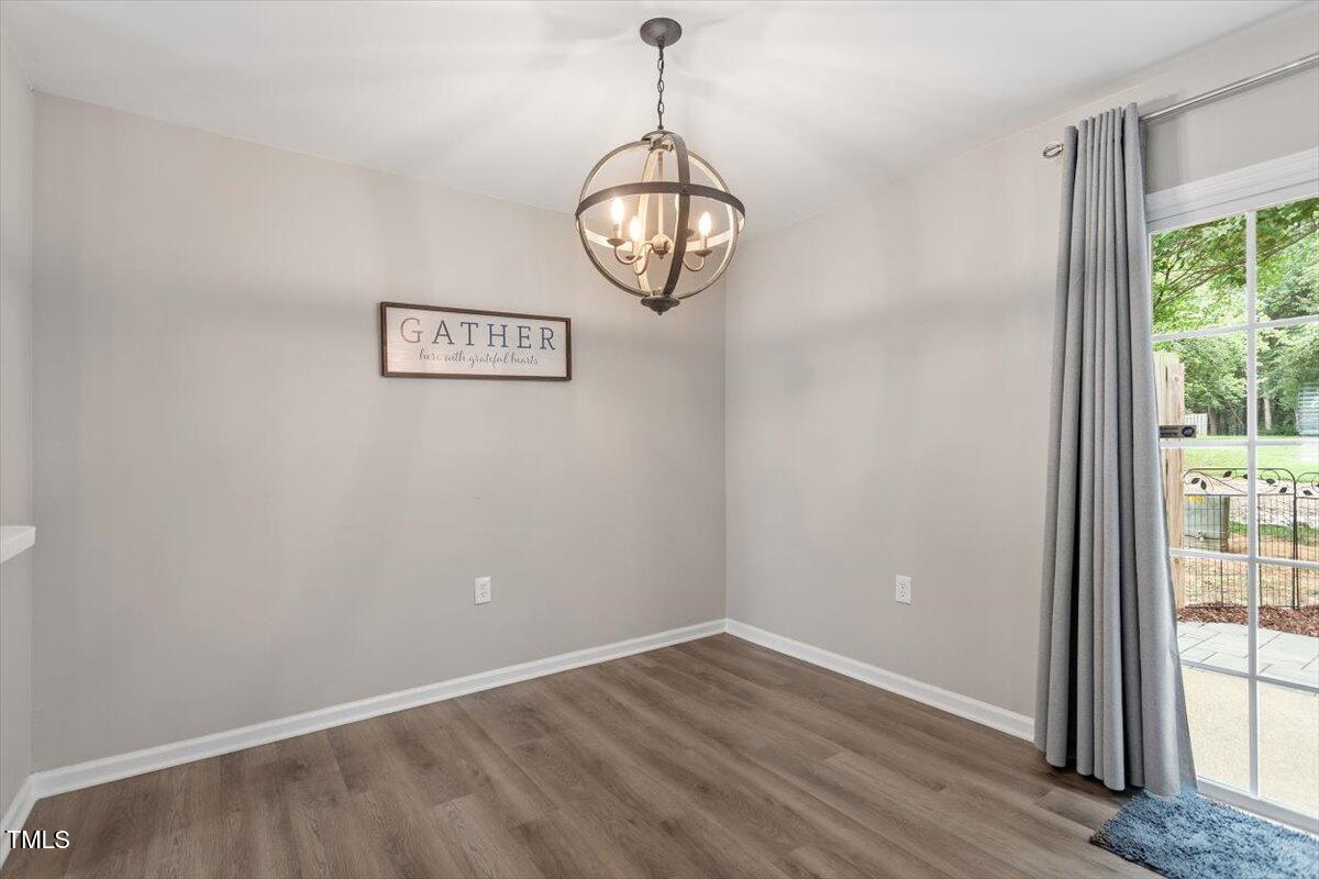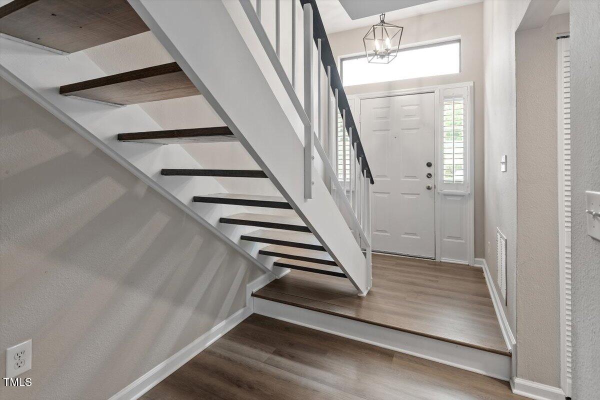 Beautiful End-Unit Condo in Prime North Raleigh Location! Live the maintenance free life-style in the desirable Cottages of Stonehenge. Features 2 spacious bedrooms, each with its own updated ensuite bath, plus a renovated powder room. LVP flooring throughout (NO carpet!). The kitchen features quartz countertops, glass tile backsplash, stainless steel appliances and tons of cabinet space. The over-sized sliding glass door brings in plenty of natural light. The owner's bathroom has a large walk-in shower and dual sinks. Enjoy one of the largest backyard spaces in the neighborhood that backs up to wooded area and has extra patio space plus functional fencing. Water heater (2020) and new AC (2025)! The Storage room is in the back of the condo. Community amenities include pool, tennis courts, clubhouse, and playground perfect for Summer activities. Top-rated schools and unbeatable location close to shopping, dining, and major roads. Great for investors who are looking for Raleigh rentals. Assigned parking in front plus visitor spaces. A must-see!