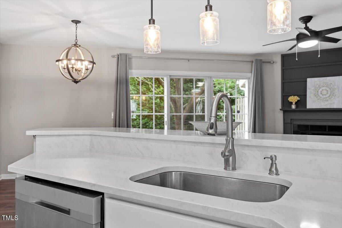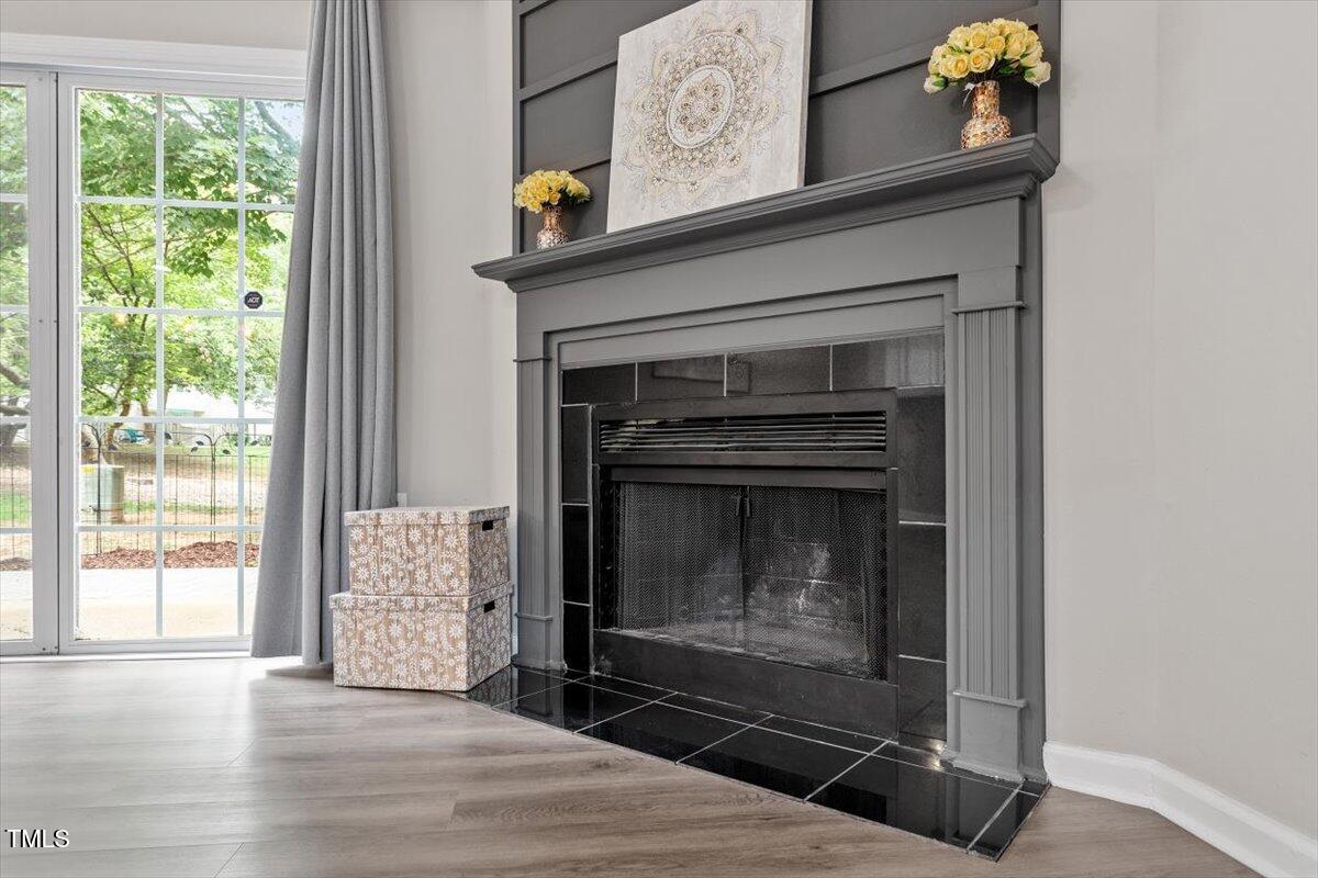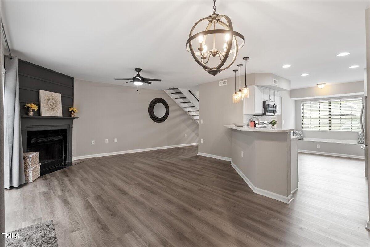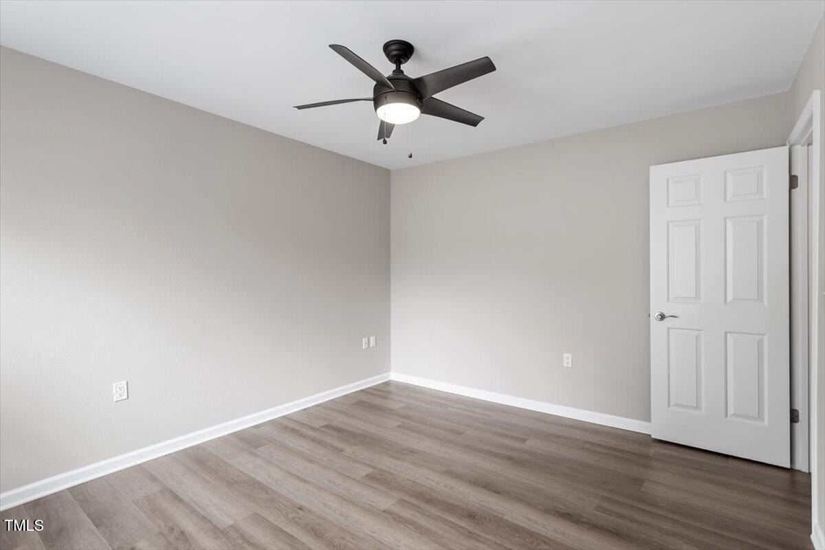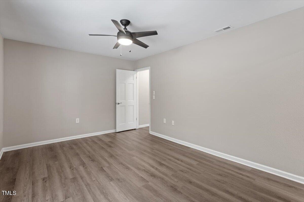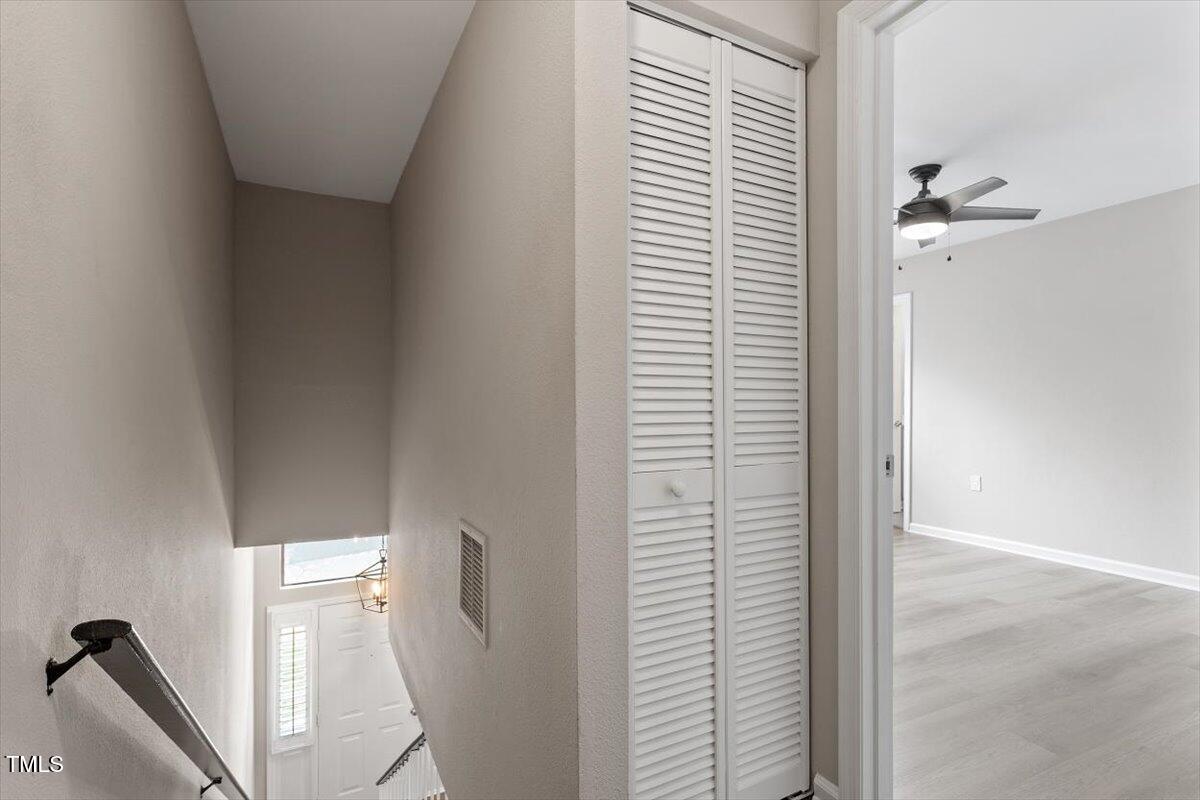Beautiful End-Unit Condo in Prime North Raleigh Location! Live the maintenance free life-style in the desirable Cottages of Stonehenge. Features 2 spacious bedrooms, each with its own updated ensuite bath, plus a renovated powder room. LVP flooring throughout (NO carpet!). The kitchen features quartz countertops, glass tile backsplash, stainless steel appliances and tons of cabinet space. The over-sized sliding glass door brings in plenty of natural light. The owner's bathroom has a large walk-in shower and dual sinks. Enjoy one of the largest backyard spaces in the neighborhood that backs up to wooded area and has extra patio space plus functional fencing. Water heater (2020) and new AC (2025)! The Storage room is in the back of the condo. Community amenities include pool, tennis courts, clubhouse, and playground perfect for Summer activities. Top-rated schools and unbeatable location close to shopping, dining, and major roads. Great for investors who are looking for Raleigh rentals. Assigned parking in front plus visitor spaces. A must-see!