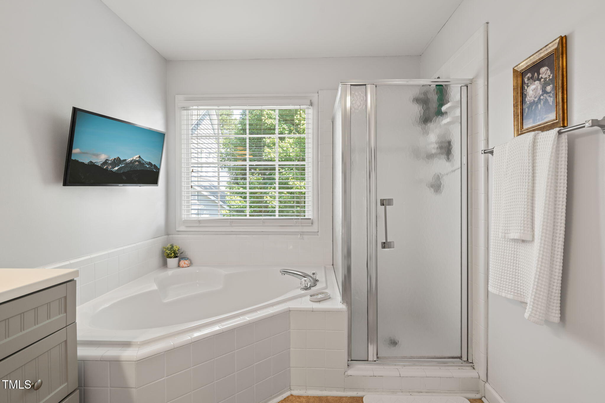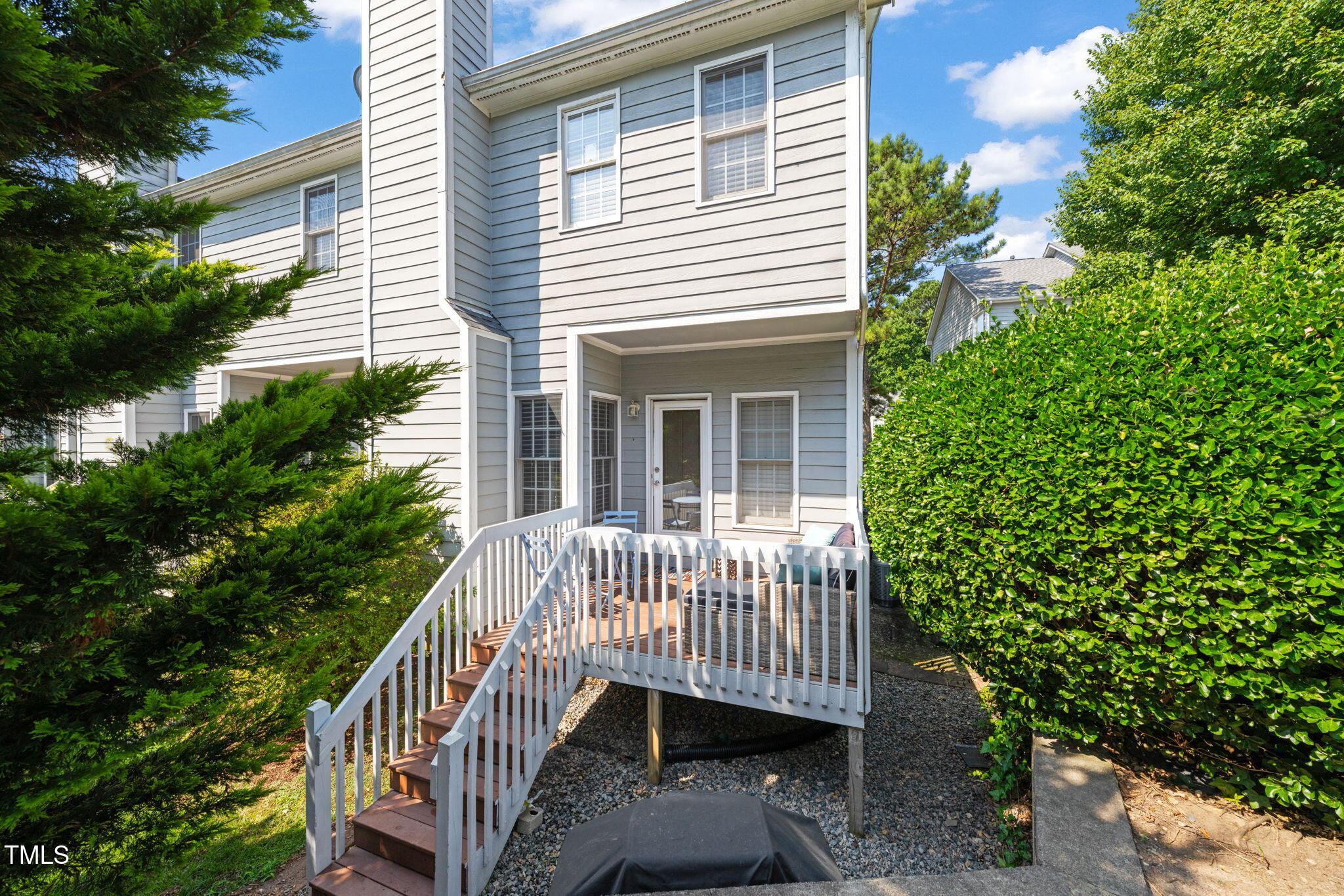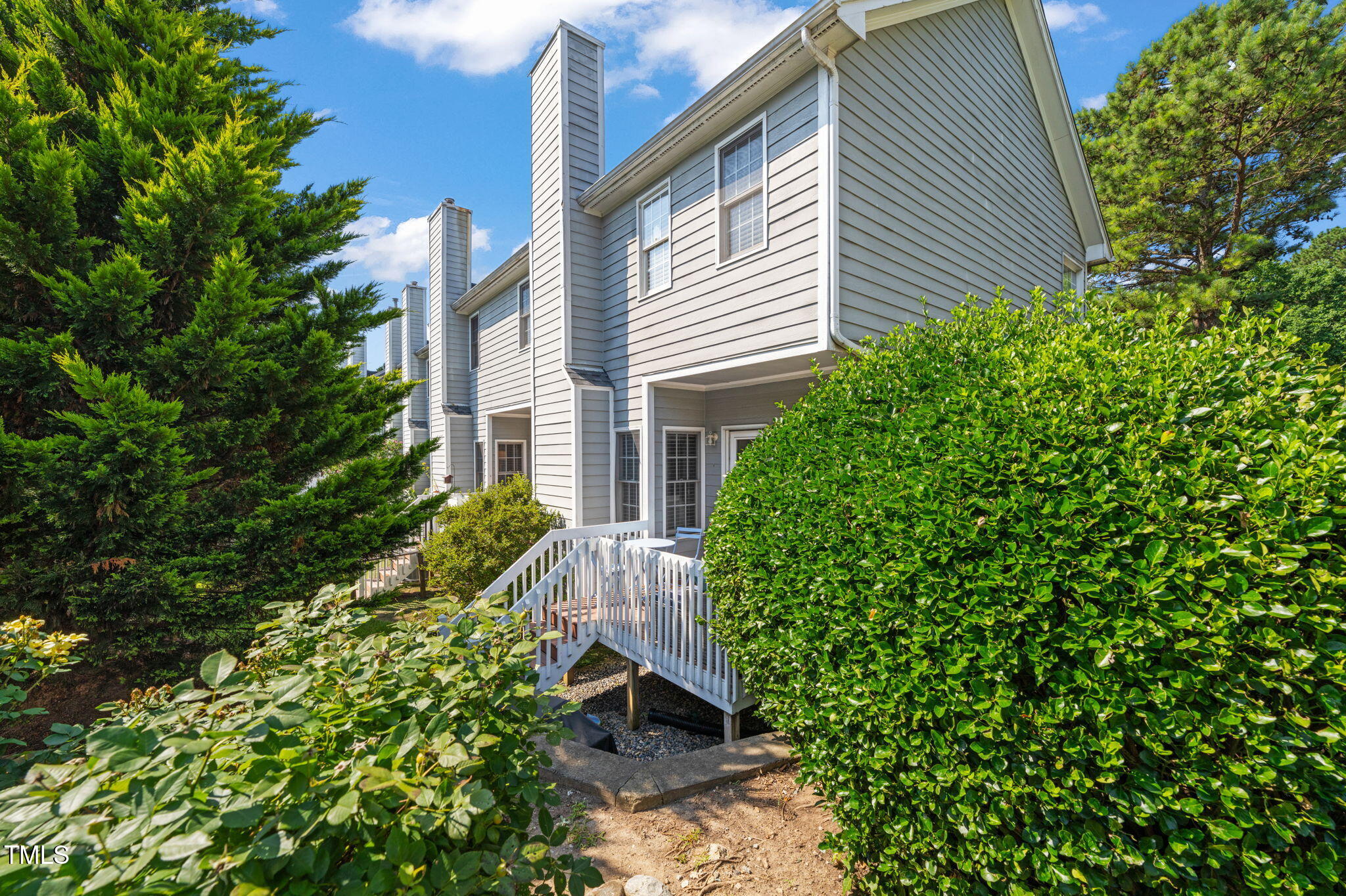 NEW $10k price improvement on this dream home in North Raleigh's coveted Providence Square. This exquisite end-unit townhome condo offers two oversized bedrooms, three baths, and sunlit elegance throughout. Nestled in a tranquil cul-de-sac, the meticulously landscaped community promises serene living. Enjoy the warmth of wood floors, a cozy gas fireplace, custom 2'' blinds and an updated kitchen with stainless appliances. The primary suite is a true retreat, complete with vaulted ceilings, a walk-in closet, and versatile flex space ideal for a home office, gym, or creative studio. More than ample garage storage with a custom-built walk-up overhead system enhances functionality. The tree lined back deck will become the heart of your private relaxation or memorable entertainment.